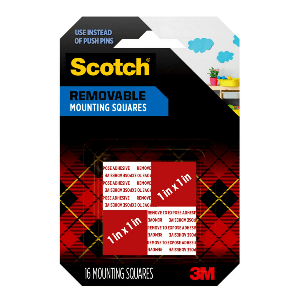 Scotch Removable Foam Mounting Squares, 1in x 1in, Pack Of 16