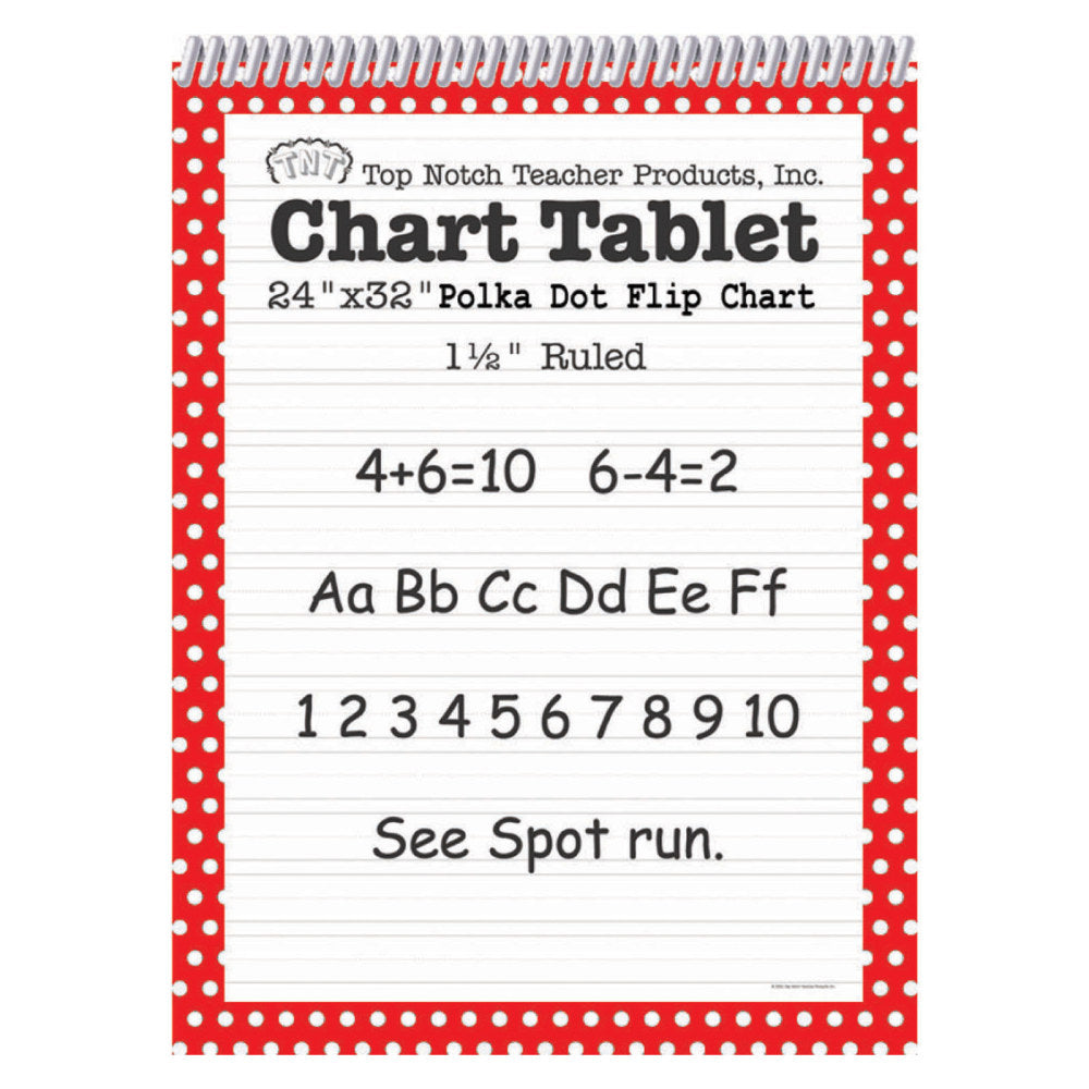 Top Notch Polka Dot Chart Tablets, 24in x 32in, 1 1/2in Ruled, Red, Pack Of 2