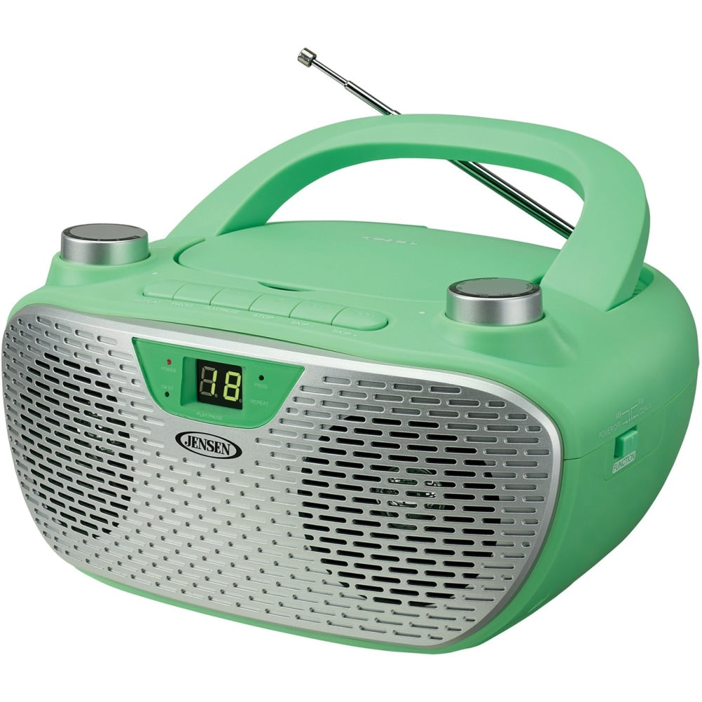 JENSEN Portable Stereo Compact Disc Player with AM/FM Stereo Radio - 1 x Disc Integrated Stereo Speaker - Green, Silver - CD-DA, MP3 - Auxiliary Input