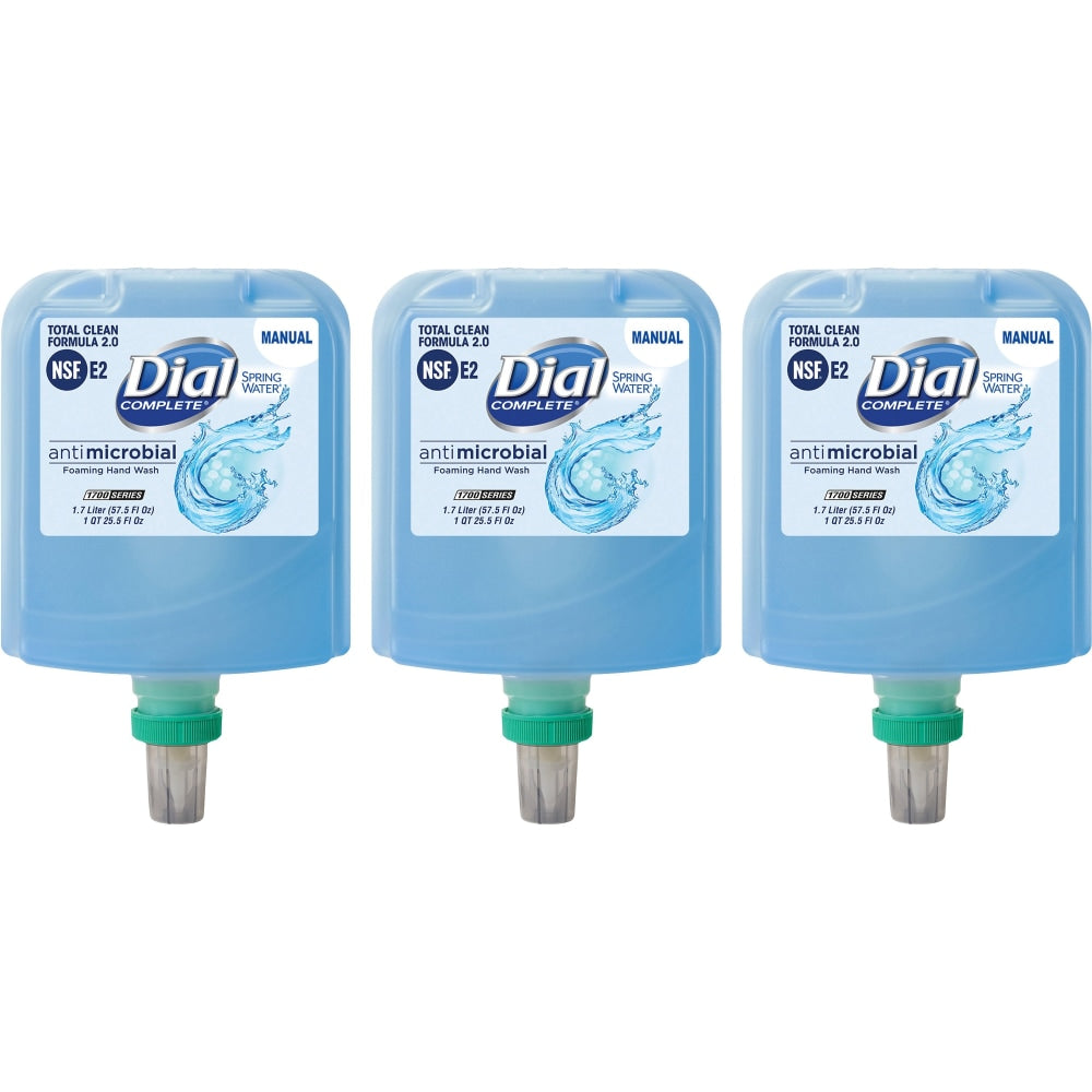 Dial Complete Complete Antibacterial Foaming Hand Wash Refill - Spring Water ScentFor - 57.5 fl oz (1700.5 mL) - Bacteria Remover - Hand, Healthcare, School, Office, Restaurant, Daycare - Moisturizing - Antibacterial - Blue - Non-drying - 3 / Carton