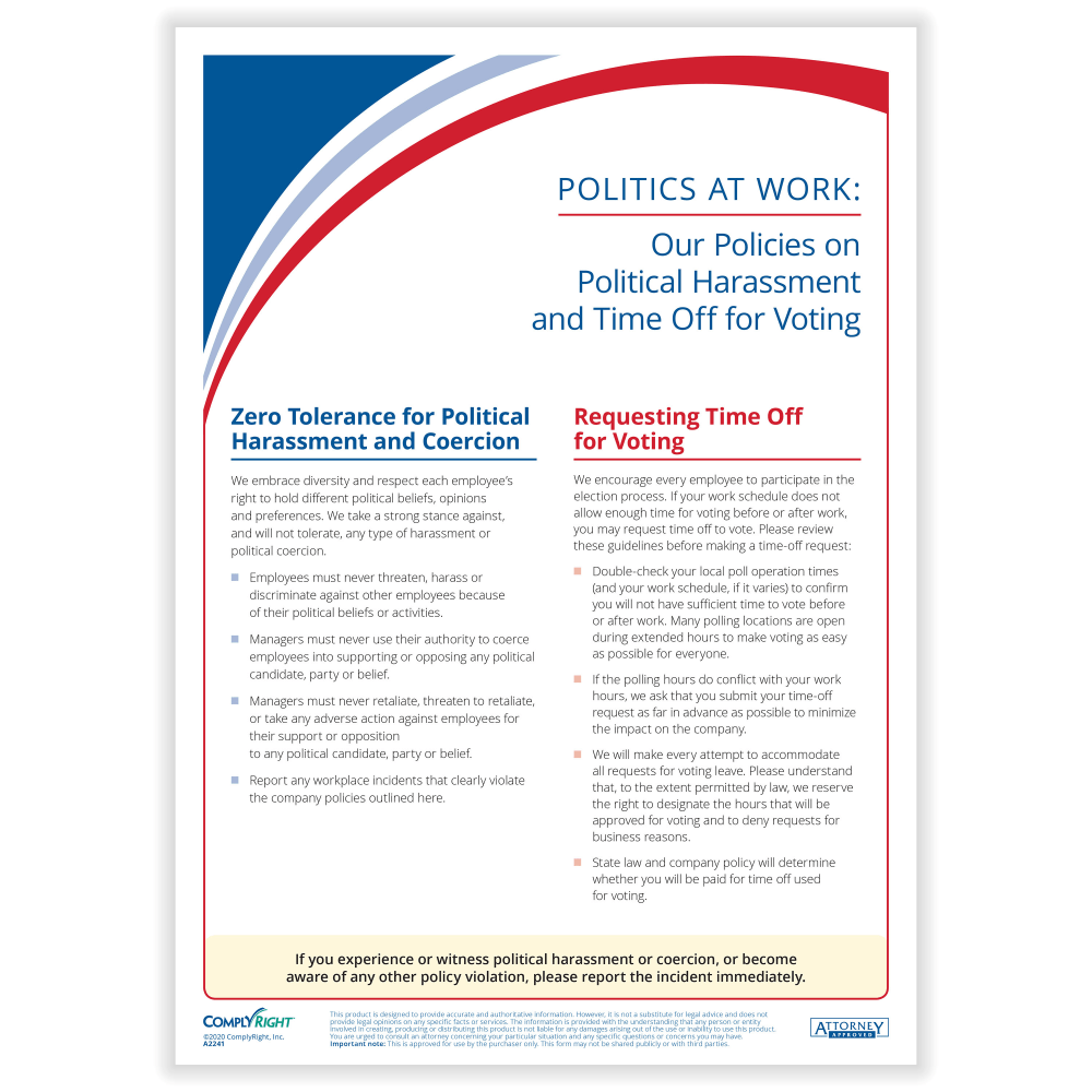ComplyRight Politics At Work Poster, Political Harassment And Time Off For Voting, English, 10in x 14in
