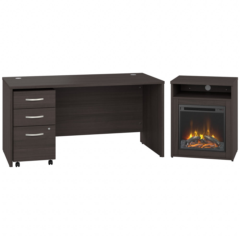Bush Business Furniture Studio C 60inW x 30inD Desk With 3-Drawer Mobile File Cabinet And 24inW Electric Fireplace With Shelf, Storm Gray, Standard Delivery