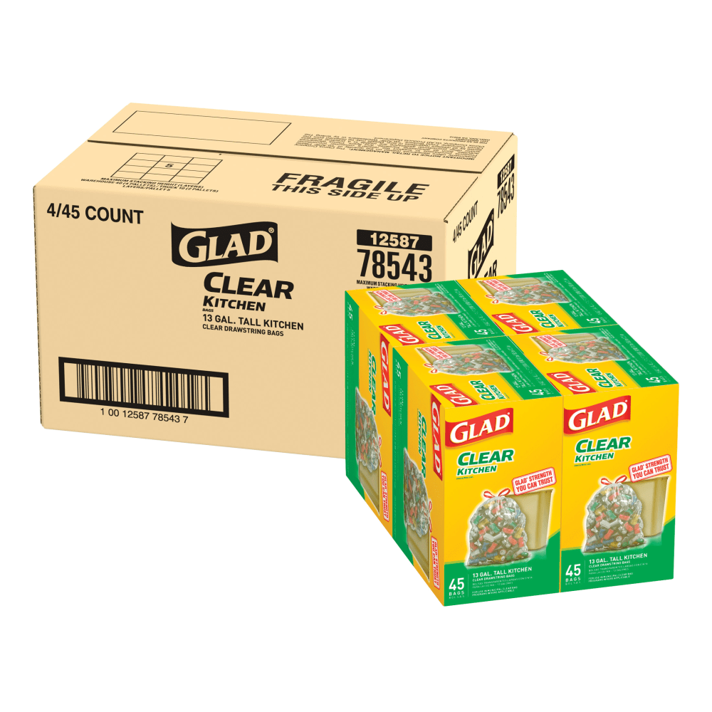 Glad Tall Kitchen Recycling Drawstring Trash Bags, 13 Gallons, Carton Of 180 Bags