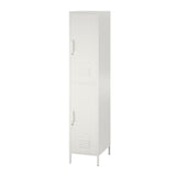 If you want an eclectic look and secure storage, consider this locking storage cabinet. The metal locker cabinet offers a durable powder-coated finish to help it look great for years. The 3-shelf cabinet features an adjustable design to help you store large or small items. Powder-coated metal construction offers durability. 3 adjustable shelves help you organize your things. Lockable design for security. Clean with a damp cloth. Weight capacity tested to support 130 lb. Assembly required. Backed by the manufacturers 1-year limited warranty. Sleek white design.