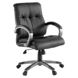 Managerial swivel chair is upholstered in bonded leather for a professional look and your comfort. Loop arms feature an elegant finish and are upholstered in leather. Arm height measures from 27in to 30in depending on chair height adjustment. Upholstered in bonded leather Loop arms feature an elegant Silver finish adjustable Features gas lift, seat-height adjustment, 360-degree swivel and tilt tension 5-star base with hooded double-wheel casters Tested to meet ANSI/BIFMA Performance Standards - Manufacturer testing has been conducted on this product to meet specific performance requirements and safety standards set forth by the American National Standards Institute (ANSI) and the Business and Institutional Furniture Manufacturers.