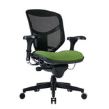 Find your ideal seating position easily with the WorkPro Quantum 9000 Series Mid-Back Desk Chair. The seat back of this mesh desk chair raises or lowers with a ratchet, the seat can be adjusted in height and depth and the armrests are fully adjustable, so you can truly customize your seat to fit you. With mesh fabric, this comfy office chair promotes airflow to help you stay cool and comfortable while tackling your to-do list. Plus, the lumbar feature supports your lower back, while the waterfall seat cushion helps reduce the stress on your legs to keep you comfortable from your first cup of coffee until you head home at the end of the day. Ergonomic mesh back and mesh fabric seat construction. Recommended for professional use 8-10 hours per day. Weight capacity tested to support 275 lb. Overall Dimensions: 37-1/2in to 43-3/4inH x 29-1/2inW x 28inD. Mesh back features an adjustable-height, convex-shaped design. Lumbar supports your lower back. Adjustable seat height and depth. Gliding, waterfall seat cushion. Adjustable back tilt pressure tension control. Synchro-Tilt with 3-position tilt lock. Height-, pivot angle- and forward-backward slide-adjustable gel armrests. 5-star base with dual caster wheels. Assembly required. Mesh office chair boasts a lime green fabric seat and black frame. Seat is upholstered with premium fabric - a thicker and heavier woven fabric for added durability. Backed by the manufacturers limited lifetime warranty. GREENGUARD certified - certified for low chemical emissions: UL.COM/GG - UL 2818. Ranked in two tiers: Certified and Gold. ANSI/BIFMA Compliant - This product has been tested and verified for compliance with rigorous performance requirements and safety standards related to specific furniture products. Less harsh chemicals - made with fewer harsh chemicals, or safer chemicals than typical alternatives, helping reduce your use of and exposure to substances that may be more harmful to your health and the environment. Contains Recycled Content - See Specs for Details.