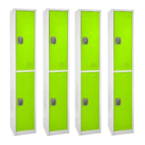 Alpine 2-Tier Steel Lockers, 72inH x 12inW x 12inD, Green, Set Of 4 Lockers