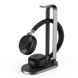 Answer calls with the Yealink BH72 UC Headset. The office headset has Bluetooth technology for hands-free use, while the Acoustic Shield technology ensures clear call quality. The Yealink headset operates for up to 40 hours on a single charge for your convenience. Bluetooth headset allows for hands-free use. Retractable microphone arm stows away when not in use. Acoustic Shield technology improves call quality. Dual-side busy light is visible at most angles. Qi wireless charging reduces cord clutter. Operates for up to 40 hours. Backed by the manufacturer's 1-year limited warranty.