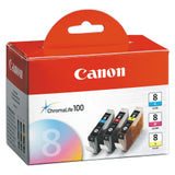 Canon CLI-8 ChromaLife 100 Cyan, Magenta, Yellow Ink Tanks, Pack Of 3, 0621B016