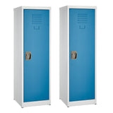 Use the Alpine 1-Tier Steel Lockers to organize classroom essentials, art supplies, accessories and more. With a durable steel construction and built-in shelves, these student lockers offer strength and ample space for your belongings. Dual locking mechanisms provide peace of mind. Storage lockers are constructed with steel framing and sides for durability. Built-in shelves and 2 hooks for storage. Vented doors help reduce bacteria and prevent odor. Dual-locking mechanisms help protect contents. Rubber feet on the bottoms offer stability. Convenient name tag slots allow for personalization. Each locker comes with 2 keys and assembly hardware. Assembly required. Backed by the manufacturer's 1-year warranty. Stylish blue design.
