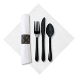 CaterWrap Pre-Rolled Cutlery, Crescent FashnPoint Napkin, Black/White, Case Of 100 Rolls