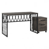kathy ireland Home by Bush Furniture City Park 48inW Industrial Writing Desk With Mobile File Cabinet, Dark Gray Hickory, Standard Delivery