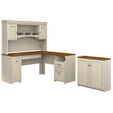 Bush Furniture Fairview 60inW L Shaped Desk With Hutch And Small Storage Cabinet, Antique White/Tea Maple, Standard Delivery