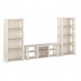 Bush Furniture Homestead Farmhouse TV Stand For 70in TVs With 4-Shelf Farmhouse Bookcase Set, Linen White Oak, Standard Delivery