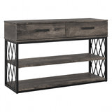 kathy ireland Home by Bush Furniture City Park Industrial Console Table With Drawers And Shelves, Dark Gray Hickory, Standard Delivery