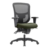 Style meets comfort with the WorkPro 9500XL Series Big And Tall Mid-Back Multifunction Office Chair. With sleek lines and a contemporary look, this office chair fits right in with your office decor. The fabric seat provides lasting comfort and the mesh back helps promote airflow to keep you cool during the workday. With its extra-large construction, the adjustable desk chair offers durability and support, and the waterfall seat and adjustable lumbar help minimize leg and back stress, so you can focus on your phone call, e-mail or presentation. Ergonomic design allows for comfort.Recommended for professional use 8-10 hours per day. Weight capacity tested to support 400 lb. Overall Dimensions: 38-5/16in to 44-7/8inH x 26-3/8inW x 26-15/16inD. Lumbar support. Waterfall seat cushion. Breathable mesh backrest. Fabric seat. Pneumatic seat height adjustment. Forward seat tilt and back tilt adjustments. Seat slider. Adjustable back height and lumbar. Adjustable T-arms. Nylon base with casters. Assembly required. Black mesh back office chair features a olive green fabric seat. Seat is upholstered with premium fabric - a thicker and heavier woven fabric for added durability. Backed by the manufacturers limited lifetime warranty. GREENGUARD certified - certified for low chemical emissions: UL.COM/GG - UL 2818. Ranked in two tiers: Certified and Gold. ANSI/BIFMA Compliant - This product has been tested and verified for compliance with rigorous performance requirements and safety standards related to specific furniture products. This product is heavy and/or oversized and may need more than one person to handle. Less harsh chemicals - made with fewer harsh chemicals, or safer chemicals than typical alternatives, helping reduce your use of and exposure to substances that may be more harmful to your health and the environment.