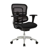 Whether you are working on a long-term project or something quick, the WorkPro 12000 Series Mid-Back Managers Chair delivers the comfort and support needed to get the job done. Lean back in the comfy office chair, which is crafted with a fabric seat for a soft feel and a mesh back, which helps promote airflow to keep you cool. The rugged nylon and aluminum frame offers reliability, while the lumbar feature of the back supports the natural curve of your spine. A waterfall seat cushion helps reduce the stress on your legs and the adjustable height, tilt and padded arms help you find the ideal configuration to suit your needs, so you stay fresh and focused. Ergonomic design allows for comfort. Recommended for professional use 8-10 hours per day. Weight capacity tested to support 275 lb. Overall Dimensions: 38-5/16in to 44-7/8inH x 26-3/8inW x 26-15/16inD. Lumbar support. Waterfall seat cushion. Nylon and aluminum frame. Mesh back office chair boasts fabric seat upholstery. 1-touch height adjustment with weight-activated mechanics. Backrest adjusts in height. Adjustable tilt angle with tilt lock. 6-position adjustable padded armrests. Assembly required. Black mesh back office chair features a black fabric seat and chrome base. Seat is upholstered with premium fabric - a thicker and heavier woven fabric for added durability. Backed by the manufacturers limited lifetime warranty. GREENGUARD certified - certified for low chemical emissions: UL.COM/GG - UL 2818. Ranked in two tiers: Certified and Gold. ANSI/BIFMA Compliant - This product has been tested and verified for compliance with rigorous performance requirements and safety standards related to specific furniture products. Less harsh chemicals - made with fewer harsh chemicals, or safer chemicals than typical alternatives, helping reduce your use of and exposure to substances that may be more harmful to your health and the environment.
