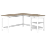 Bush Business Furniture Mayfield 60inW L-Shaped Corner Desk With Storage, Pure White/Shiplap Gray, Standard Delivery